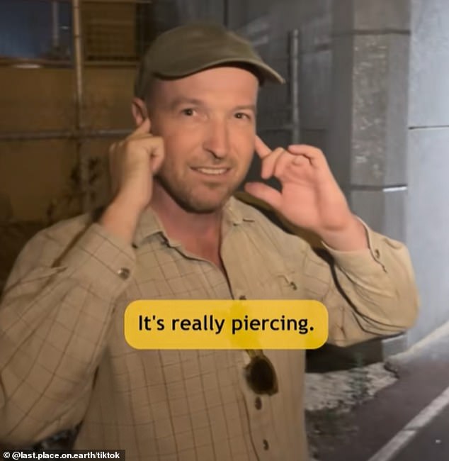 ‘It’s really piercing. It’s almost painful, and that’s the whole idea,’ he said, fingers in his ears.